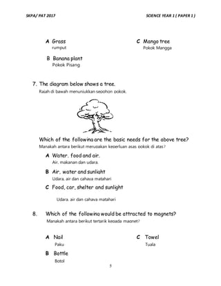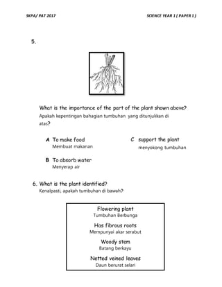 Ujian Pertengahan Tahun Sains Tahun 1 Kssr Dlp Sumber Pendidikan